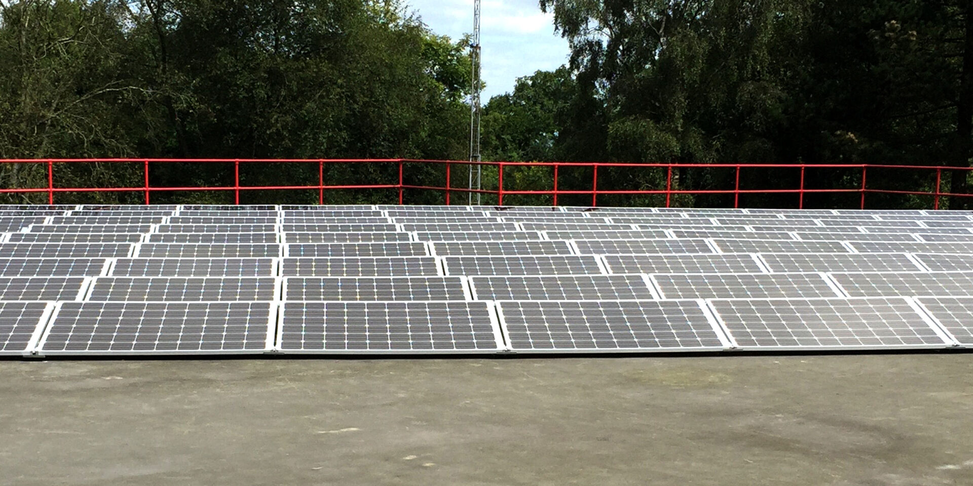 Supplied and installed 28kw solar PV system, 105 x 265w modules using a large scale non-penetration roof system which uses ballast weights as support.