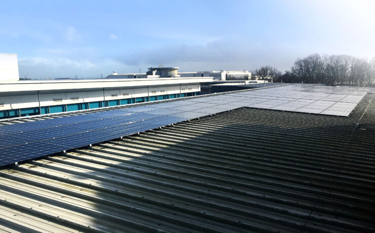 Supplied and installed 50kw solar PV at the WWU HQ building. This was mounted using a roof mounting system fixed directly to the sheet metal using rails with a sealing strips and fixings. Also mounted a solar display in the reception area so visitors can see the amount energy produced
