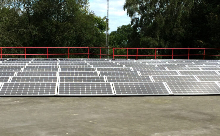 Supplied and installed 28kw solar PV system, 105 x 265w modules using a large scale non-penetration roof system which uses ballast weights as support. This was mounted on top of and old bunker which has been converted for training for Avon Fire and Rescue service. It is also adjacent to